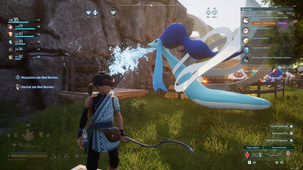 De gameplay van Palworld is een mengeling van verschillende genres, wat zowel een kracht als een zwakte kan zijn. Het verzamelen en trainen van Pals doet denken aan klassieke monsterverzamelgames, maar Palworld voegt daar een overlevingsaspect aan toe. Spelers moeten voedsel en materialen verzamelen, schuilplaatsen bouwen en zich verdedigen tegen vijandige wezens en omstandigheden. Dit survival-element voegt een interessante laag van complexiteit toe aan het spel, maar kan ook overweldigend zijn voor spelers die meer geïnteresseerd zijn in het vangen en trainen van Pals.